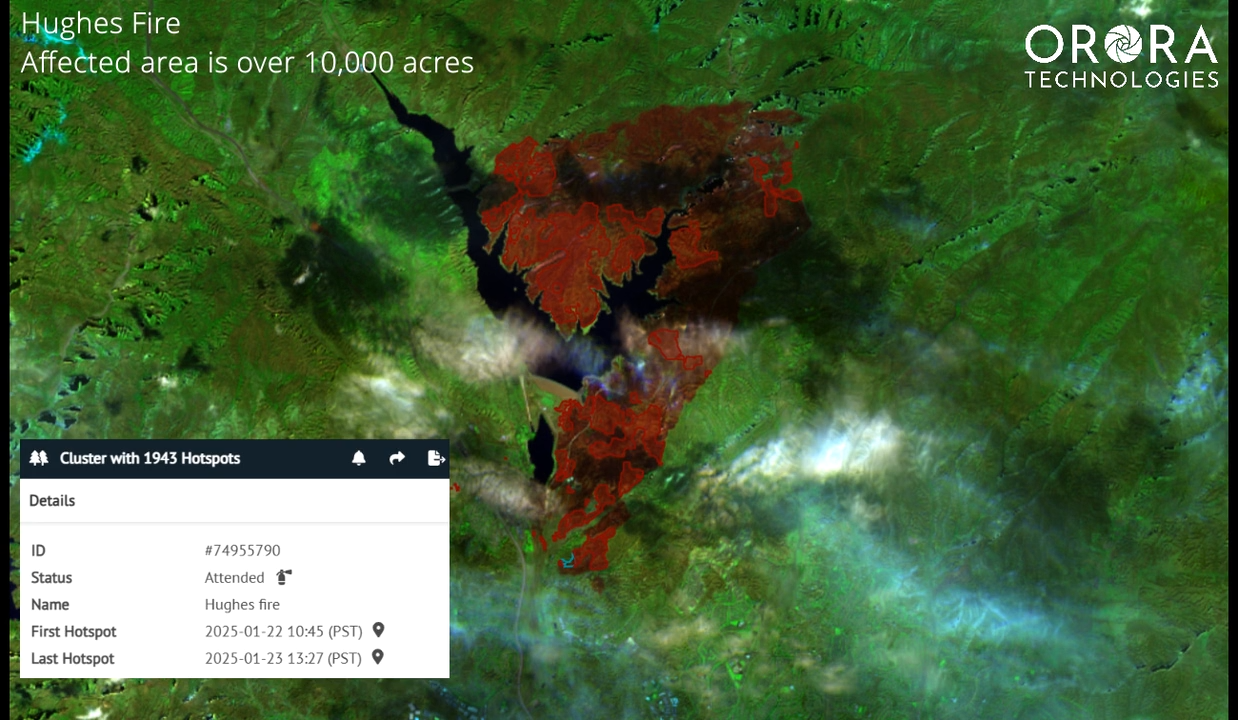 카메라 기반 산불 감지 시스템이 조기 탐지와 시각적 검증에 강점을 가진 반면, 위성 기반 감지는 광역 커버리지의 모니터링 역할을 수행해 왔다. 위성 기반 산불 감지는 주로 열 적외선(Thermal Infrared) 센서를 활용해 고온 이상(anomaly)을 탐지하며, MODIS(Terra/Aqua), VIIRS(Suomi NPP, NOAA-20) 센서는 수십 년간 전 지구 규모의 산불 데이터를 축적해 왔다. 다만 위성은 공간 해상도와 재방문 주기라는 구조적 한계를 지니며, 실시간 연기 탐지에는 제약이 따른다. 이를 보완하기 위해 Planet7, OroraTech8와 같은 민간 위성 기업들이 고빈도 관측과 전용 열 감지 위성을 기반으로 한 새로운 시도를 이어가고 있다.