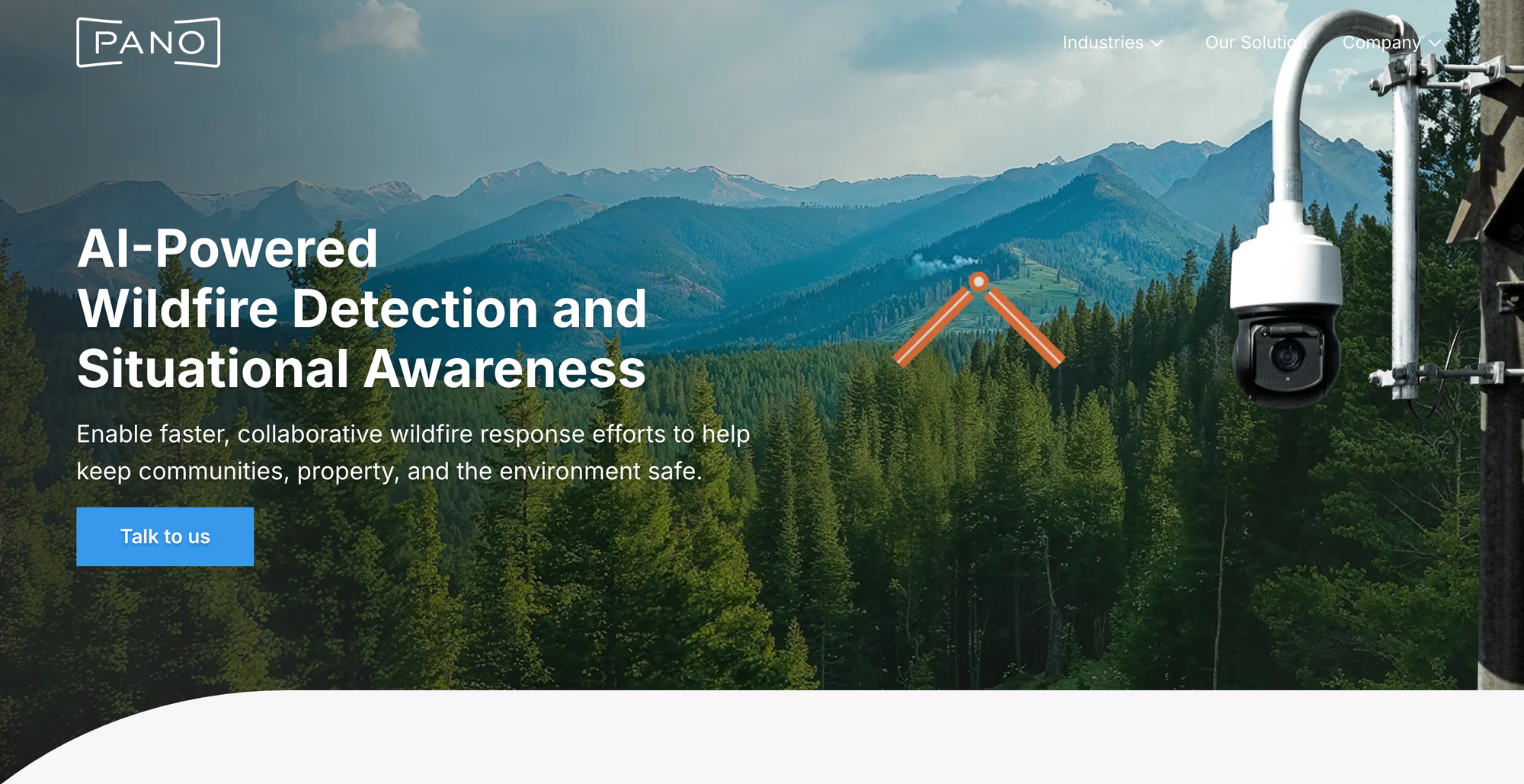 공공 주도의 산불 감지 인프라가 개방성과 접근성을 중심 가치로 발전해온 반면, 민간 기업들은 보다 조기 탐지 정확도와 운영 자동화에 초점을 맞춘 접근 방식을 발전시켜 왔다. 그 대표적인 사례가 Pano AI5다. Pano AI는 2019년 실리콘밸리에서 설립된 스타트업으로, 산악 지역에 설치된 초고해상도 파노라마 카메라와 클라우드 기반 컴퓨터 비전 AI를 결합한 상업용 산불 조기 감지 솔루션을 제공한다. 360도 시야를 커버하는 고정형 카메라를 일정 간격으로 배치하고, 수십 킬로미터 반경의 연기를 실시간으로 분석하여 사람보다 빠른 초기 연기 감지를 목표로 설계되었다. Pano AI의 가장 큰 차별점은 폐쇄형(end-to-end) 운영 모델에 있다. 카메라 영상은 일반에 공개되지 않으며, AI가 탐지한 연기 후보는 전문 인력이 추가로 검증한 뒤, 위치 추정 결과를 소방 당국·전력 회사·산림 관리 기관 등에 직접 전달한다. 또한 Pano AI는 보험사, 전력 회사, 대규모 토지 소유주 등을 고객으로 하는 B2B 모델을 채택하고 있으며, 서비스 안정성, SLA, 확장성을 중심으로 기술과 운영이 최적화되어 있다. 이들은 캘리포니아를 넘어 콜로라도, 오리건, 호주 등 산불 위험 지역으로 빠르게 확장하고 있다.